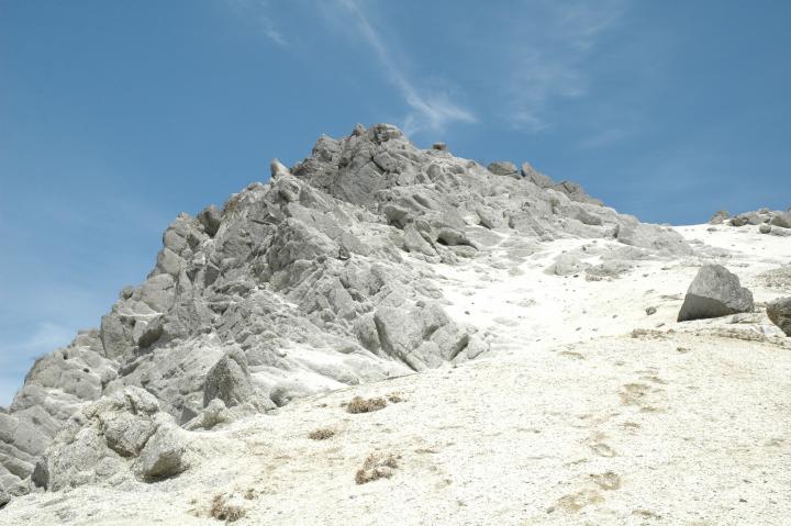 南アルプスの一画に位置する山梨百名山。山頂の「雁ケ原」は花崗岩が風化した真っ白な砂丘で素晴らしい眺望です。