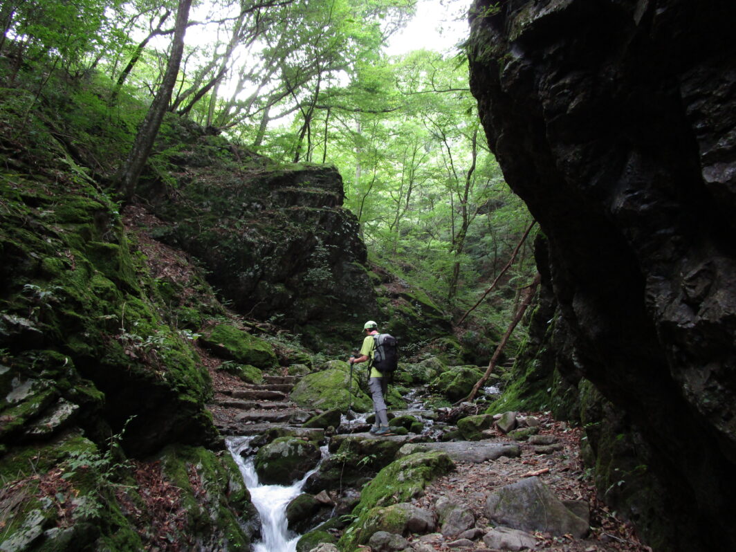 山の渓谷、清流の散策路