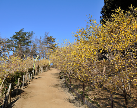 香りのよい蝋梅の麓で昼食。天然氷の採氷池や時間があれば長瀞岩石園の岩畳を見ます。