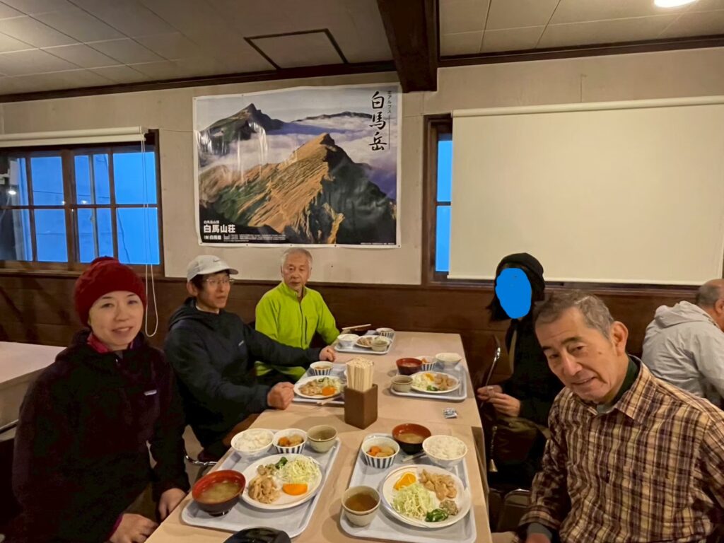 当初の計画からアクセスを変更 各自、新幹線で長野へ行きバスで白馬八方ターミナル終点で下車し白馬パノラマホテルへ集合。明日からの山行に備えてエネルギー補給し温泉に浸かり就寝。