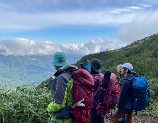 3日間の雨模様から一転して晴天に、雪倉や朝日の峰々を見ながら心は晴れる。