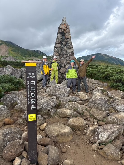白馬大池と大池山荘前で記念撮影。