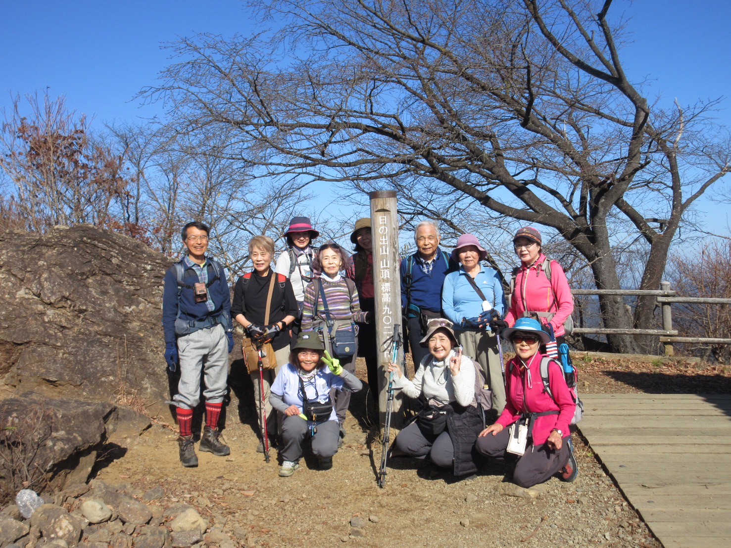 日の出山は、御岳山の傍に位置する902mの山です。頂上からの眺望は、関東平野が一望でき、東京方面は、スカイツリーや、筑波山が見え、そして西には、丹沢山麓や、富士山も見る事が出来ます。