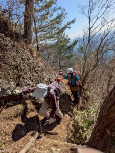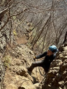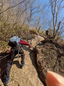 急登というより絶壁に感ずる岩肌に鎖場の連続。