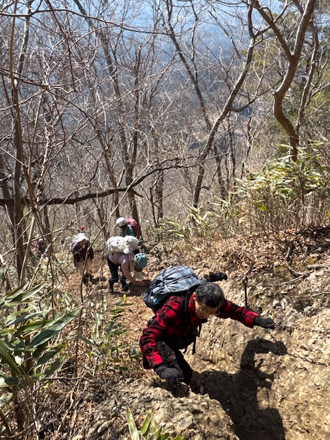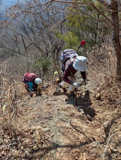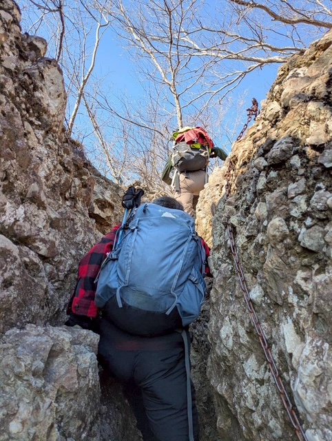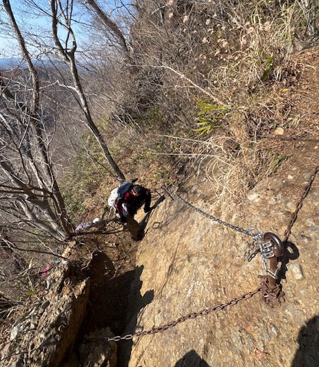 急登というより絶壁に感ずる岩肌に鎖場の連続。