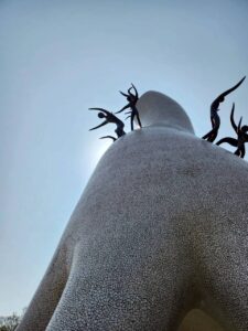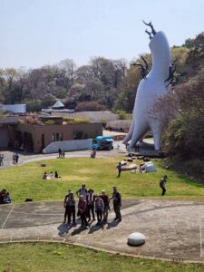 向ヶ丘遊園駅から、町中を抜け、生田緑地東口に着くと、青空の中、満開の桜が咲いていた。今日はハイキング日和の様だ。初めは、山道の階段を登り、日本民家園を左に見て、枡形山に着いた。広い広場で、ここが城趾であろうか?展望台に上がると、眼下に桜が満開、遠くには、東京都や多摩川、360°のパノラマである。展望台を降り、集合写真を撮り、桜を見ながら行くと、岡本太郎美術館があり、高い芸術の塔があった。その先、高いメタセコイアの木を見上げながら行くと、中央広場に着いた。家族、仲間など、シ―トを敷き、楽しんでいました。