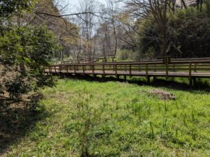 ここからは、登山道の様なアップダウンを繰り返し、生田緑地をはずれ、初山地区の水生植物鑑賞池に着く。湿地帯であり、所々に花が咲いていた。水車もあり、ここはゲンジホタルが見れる、とんもり谷戸であった。東京近郊なのに、タイムスリップした様な田舎風景でした。ここから南遊園に向かい、専修大学入口バス停で、解散としました。